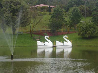 Lago central com passeio de pedalinhos.