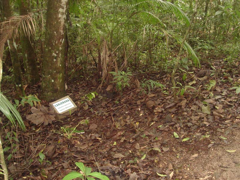 Trilha ecológica com identificação de plantas.