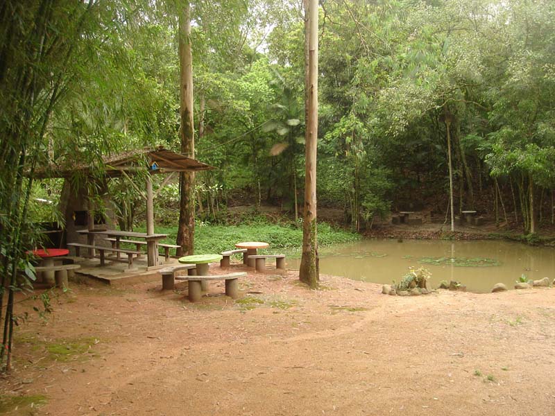 Churrasqueiras distribuídas em toda área do parque para locação.