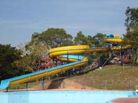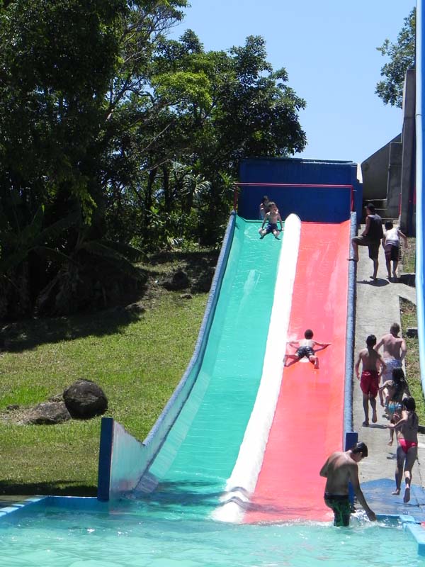 Toboágua de 60m de comprimento, duas curvas e 9m de altura.